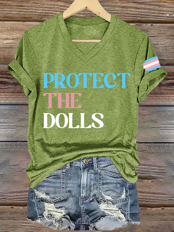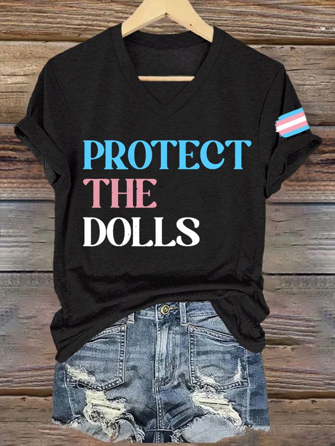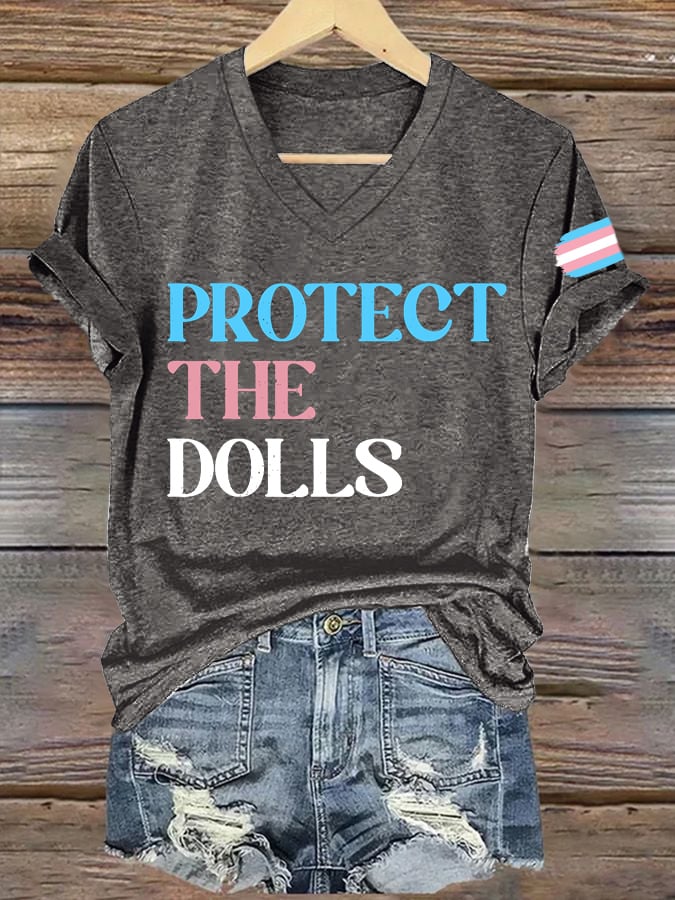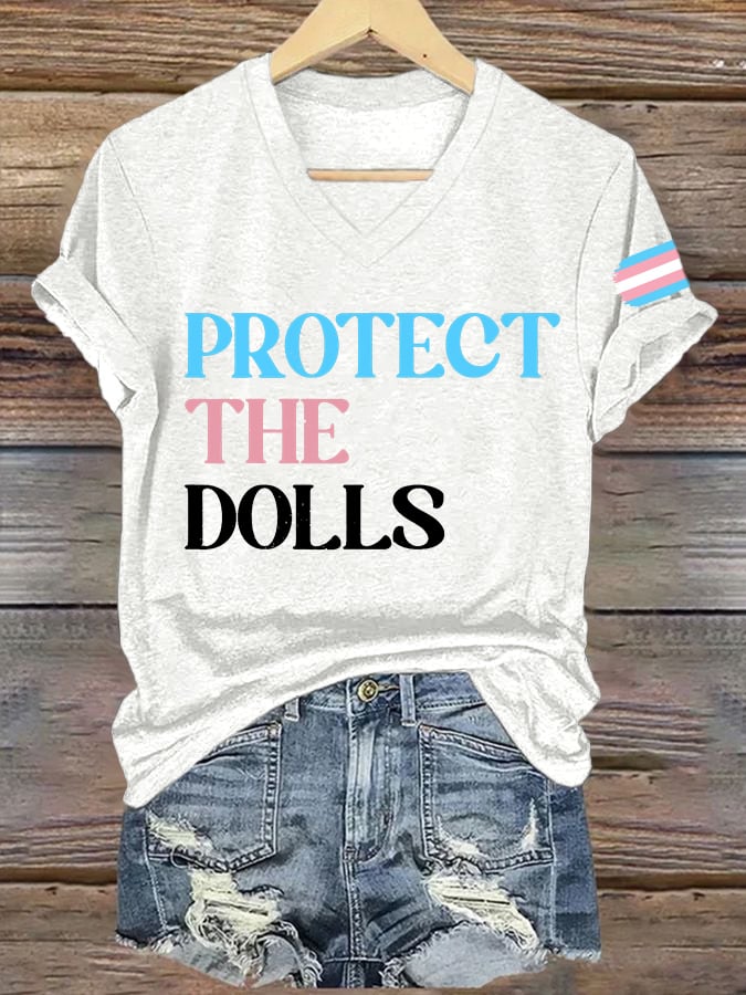 Women's Protect The Dolls Printed V Neck T-shirt