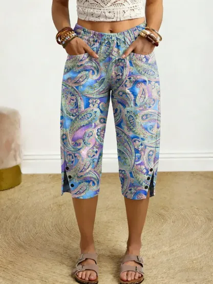 Women's Psychedelic Paisley Art Print Elastic Waist Cotton Pocket Pants