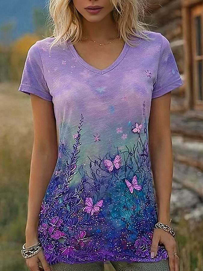 Women's Purple Floral Print Top – lolonb