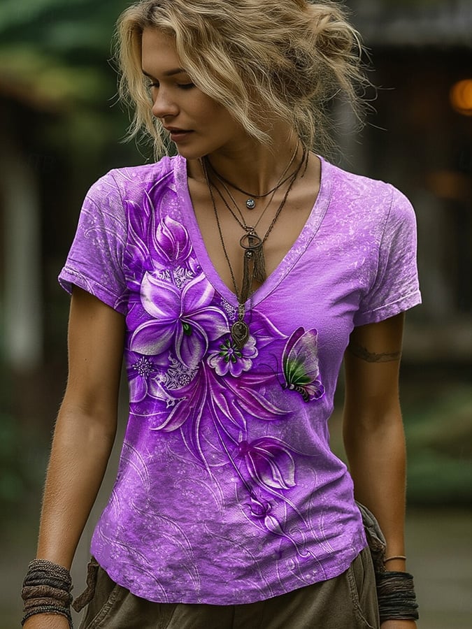 Women's Purple Floral Print Top – lolonb