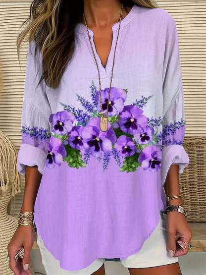 Women's Purple Flower Alzheimer's Awareness Support Print Casual Shirt