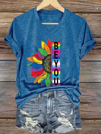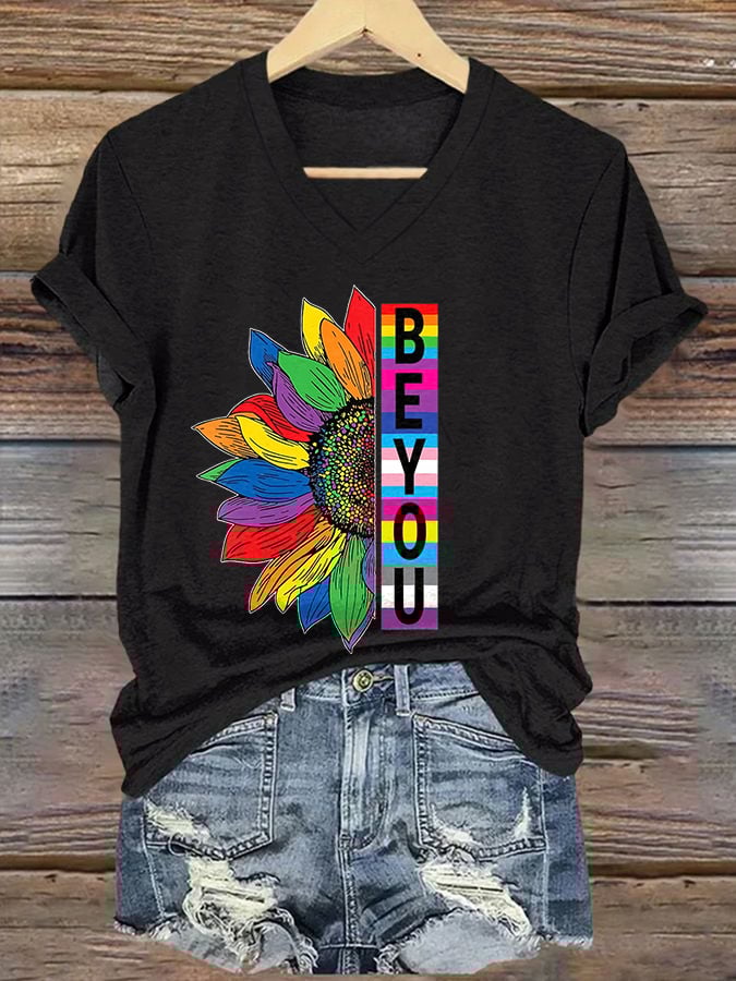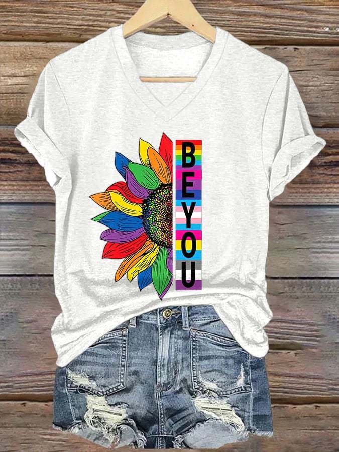 Women's Rainbow Be Yourself V-Neck Print T-Shirt Top