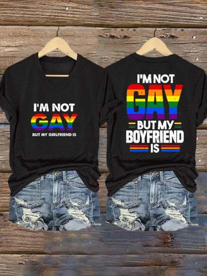 Women's Rainbow Gay Funny Text V-Neck T-Shirt