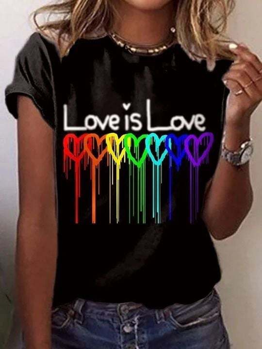 Women's Rainbow Love Heart Love Is Love Round Neck Print T-Shirt Top