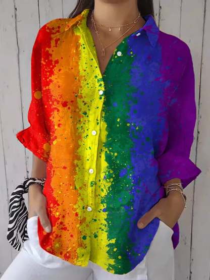 Women's Rainbow Stripe Print Casual Shirt