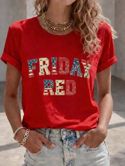 Women's Red Friday Print Crew Neck T-Shirt
