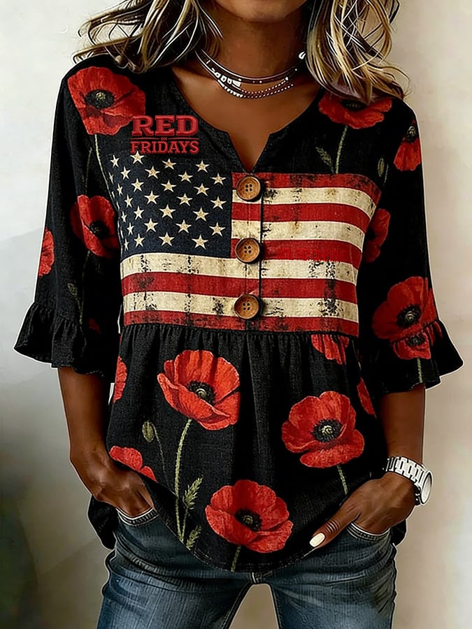 Women's Red Friday Print Top