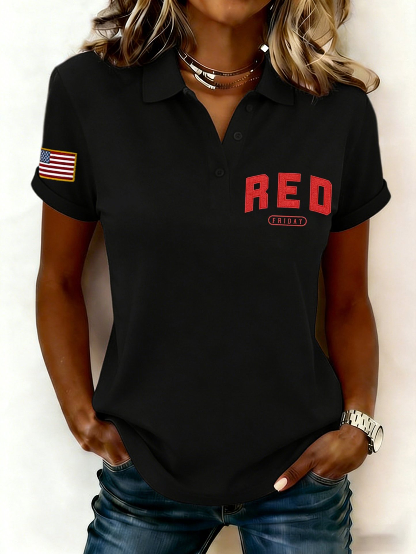 Women's Red Friday Printed Polo Shirt
