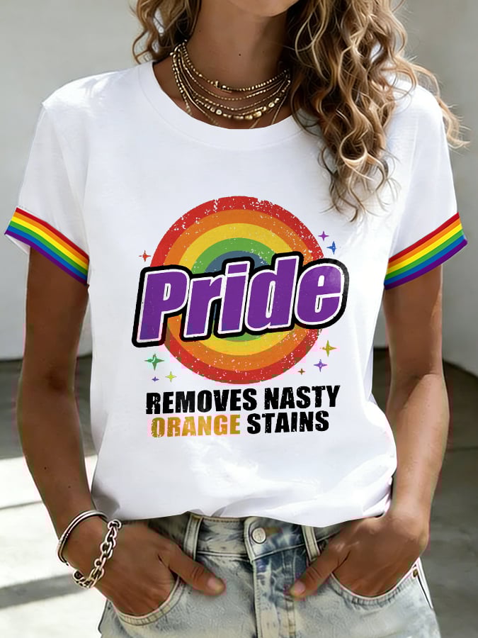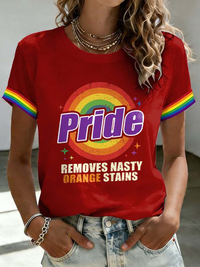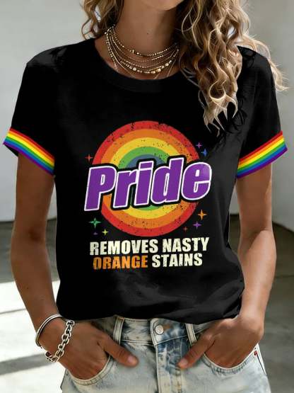 Women's Removes Nasty Orange Stains LGBT Pride Print Round Neck T-Shirt