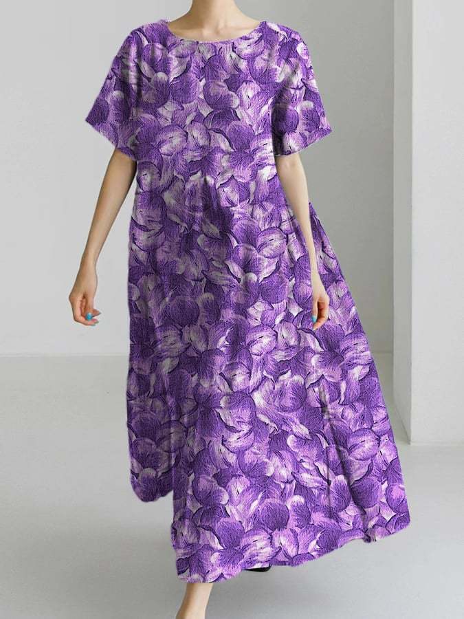 Women's Retro Botanical Floral Design Printed Casual Loose Dress