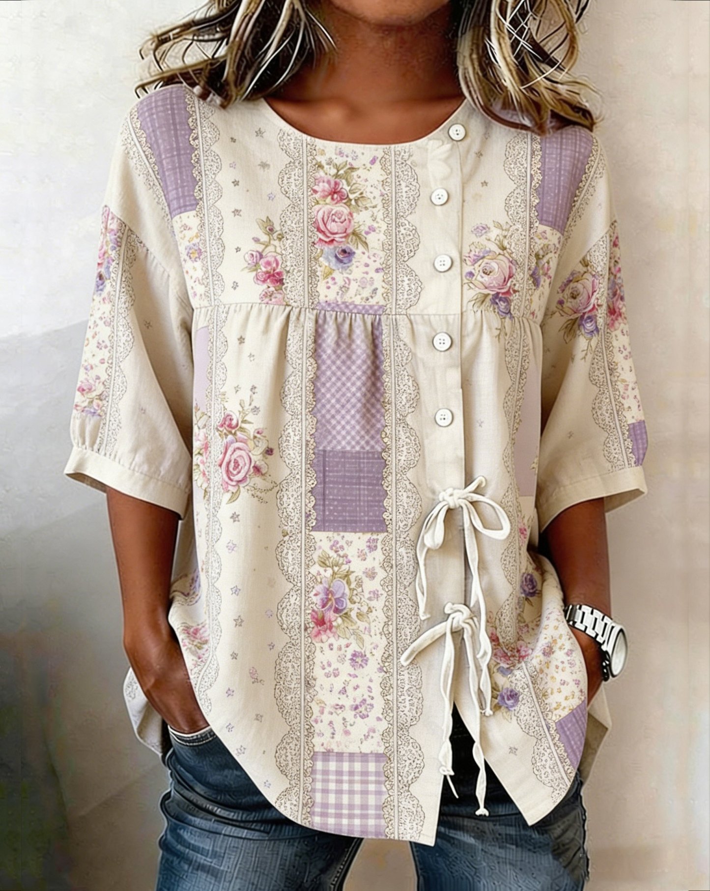 Women's Retro Faith Floral Print Top