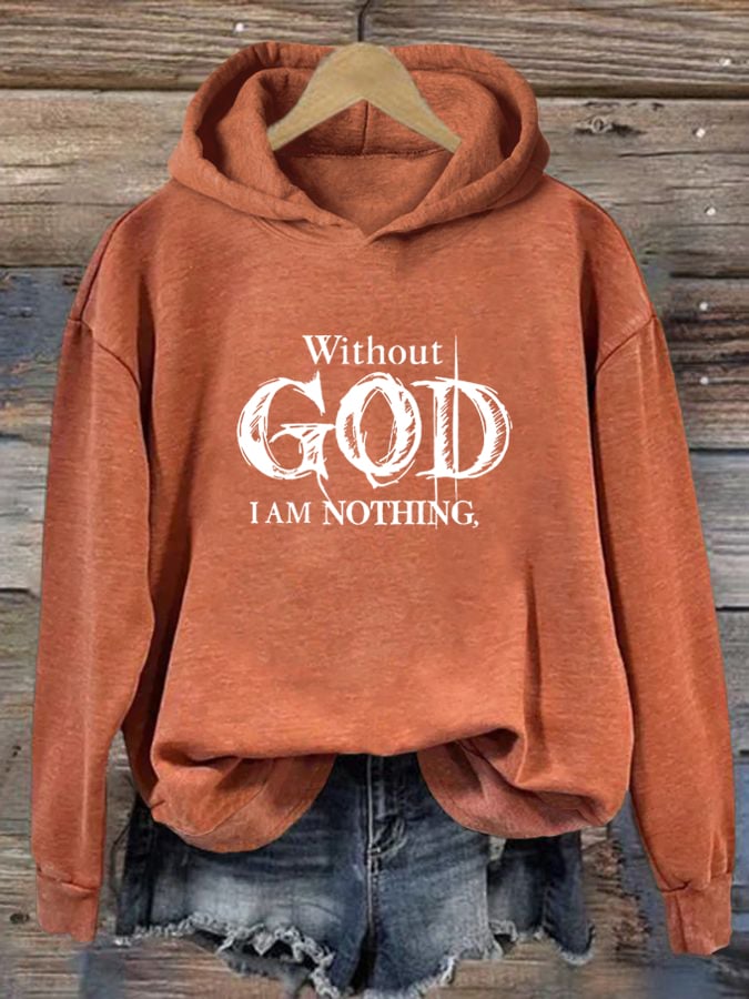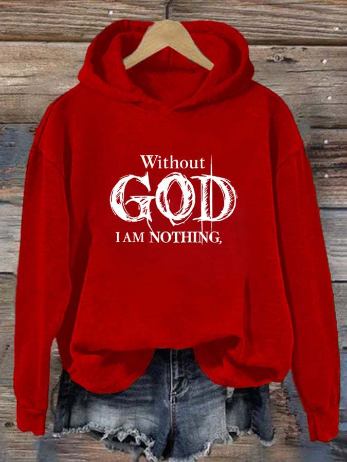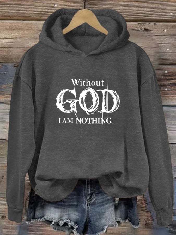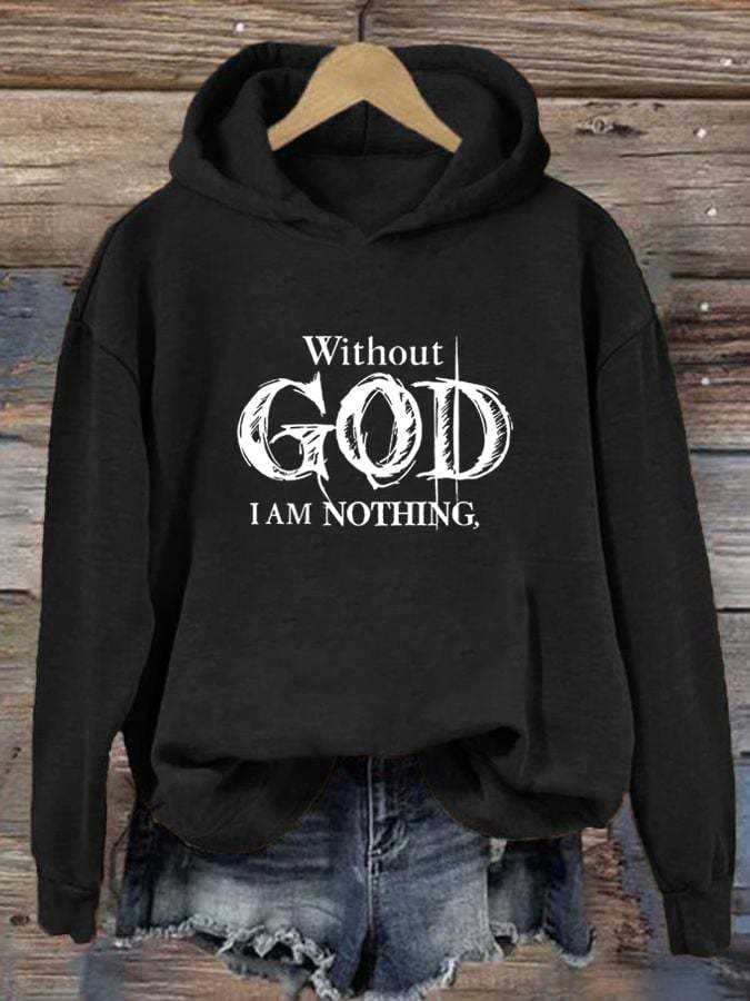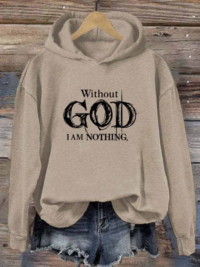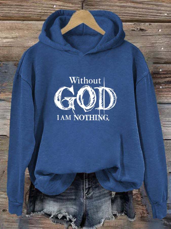 Women's Retro Faith "Without God I Am Nothing," Printed Hoodie
