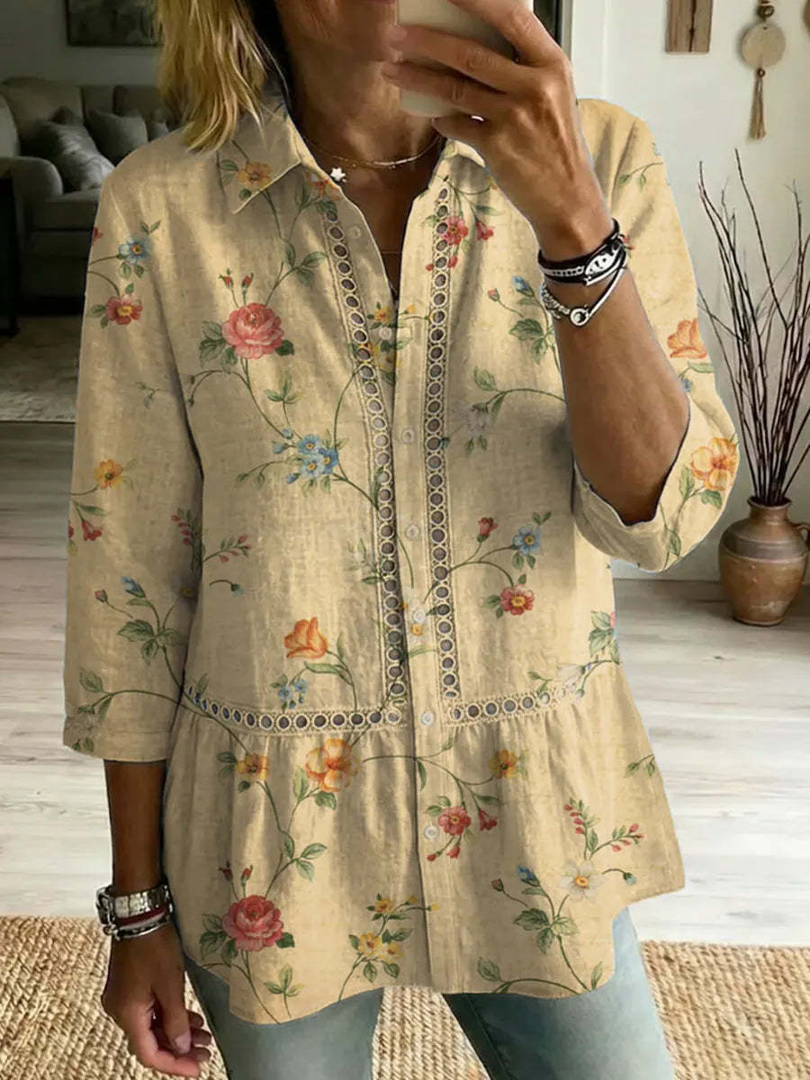 Women's Retro Floral Art Print Casual Lapel Cotton Shirt – lolonb
