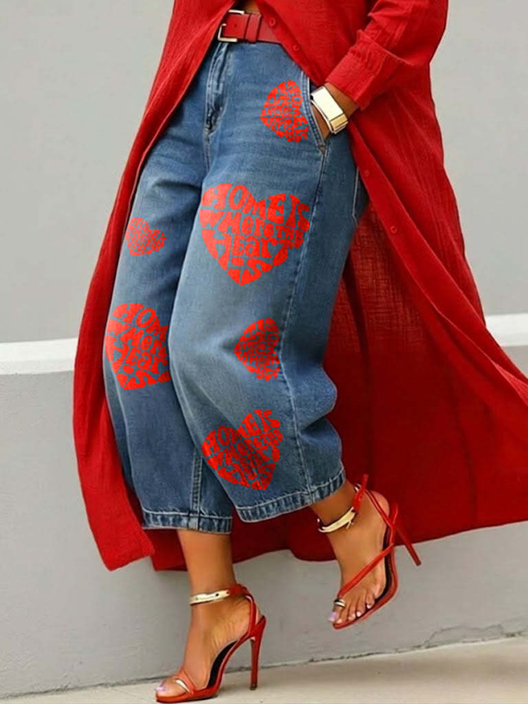 Women's Retro Heart-patterned Casual Jeans