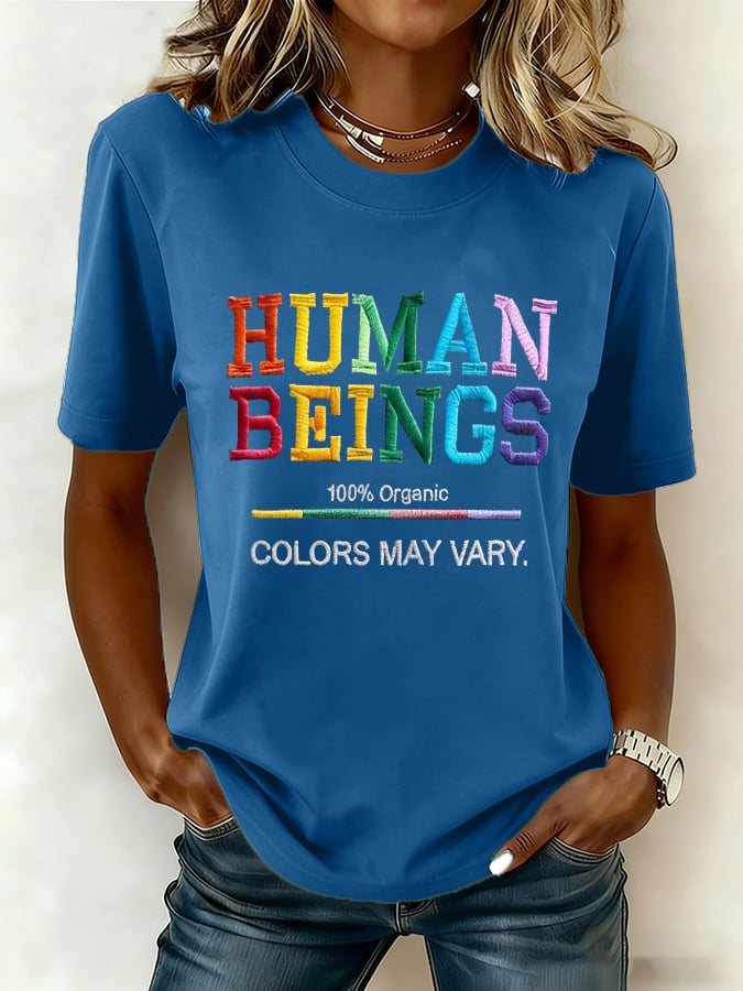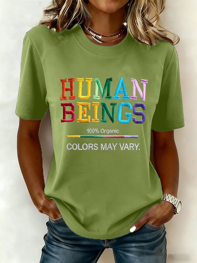 Women's Retro Human Beings 100% Organic Colors May Vary Human Rights Equality Prid Print T-Shirt
