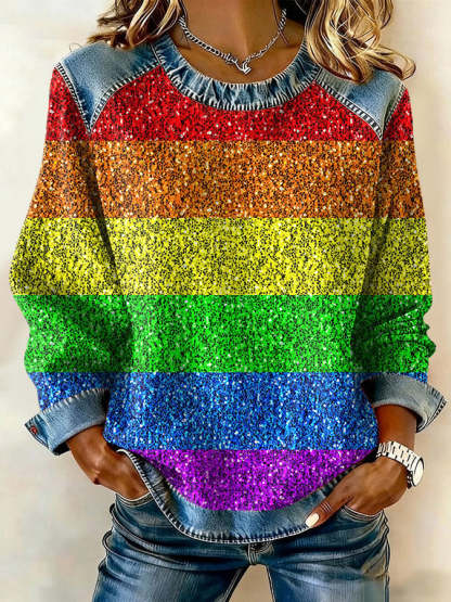 Women's Retro LGBT Rainbow Print Sweatshirt