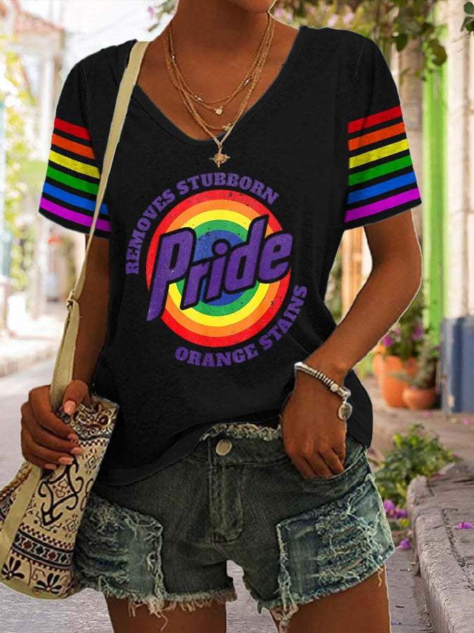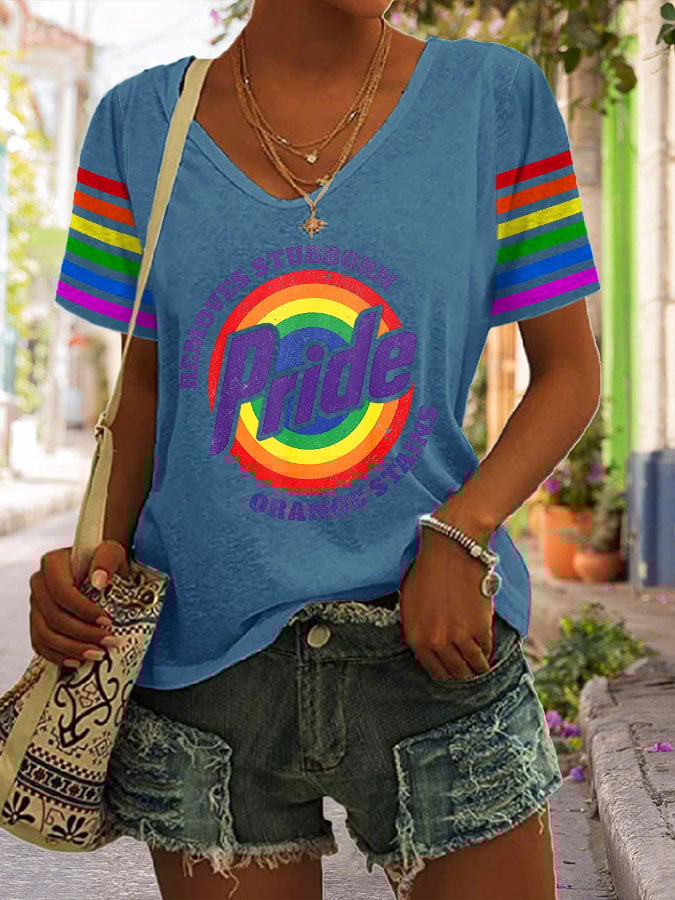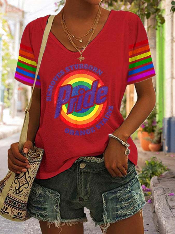 Women's Retro Pride LGBTQ Print V Neck T-Shirt