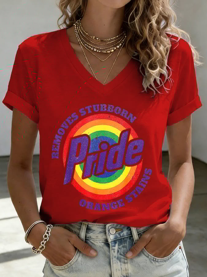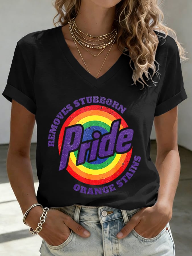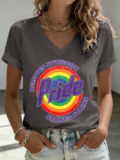 Women's Retro Pride LGBTQ Print V-Neck T-Shirt