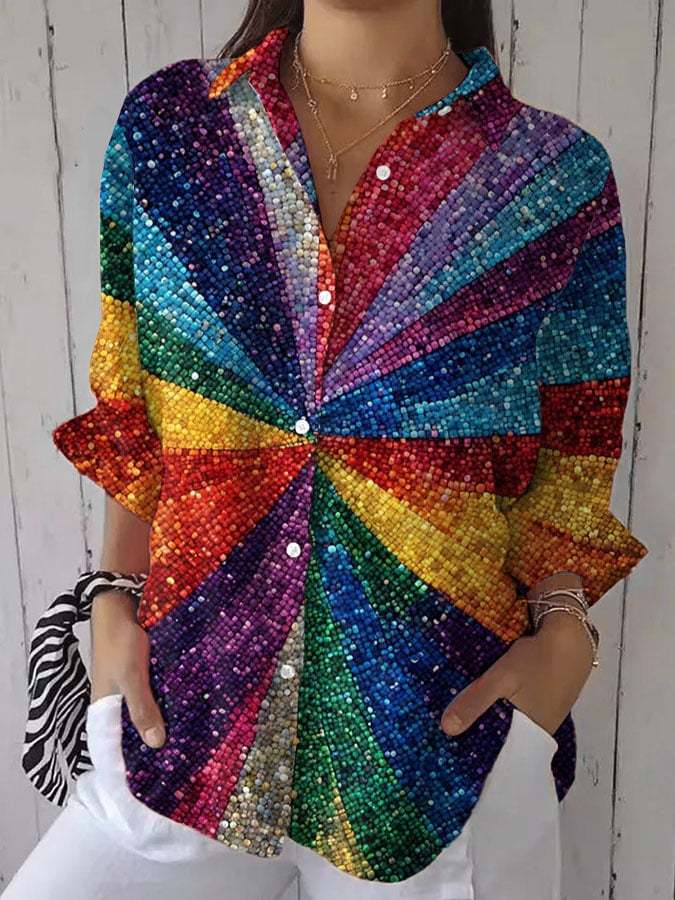 Women's Retro Rainbow Shiny Ripples LGBT Print Casual Shirt