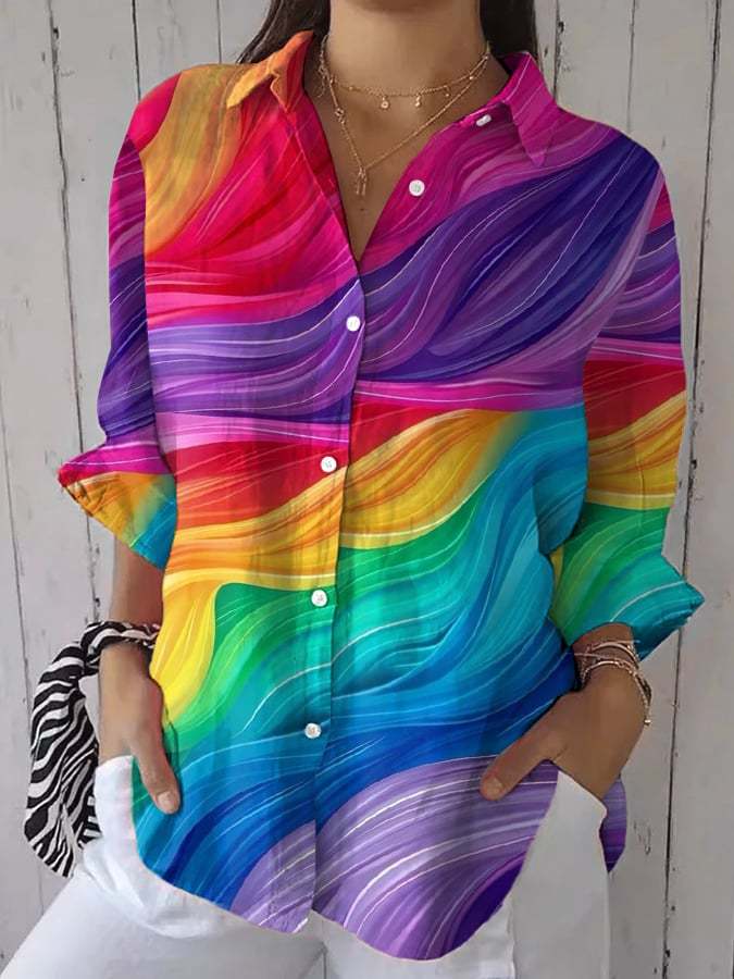 Women's Retro Rainbow Shiny Ripples LGBT Print Casual Shirt