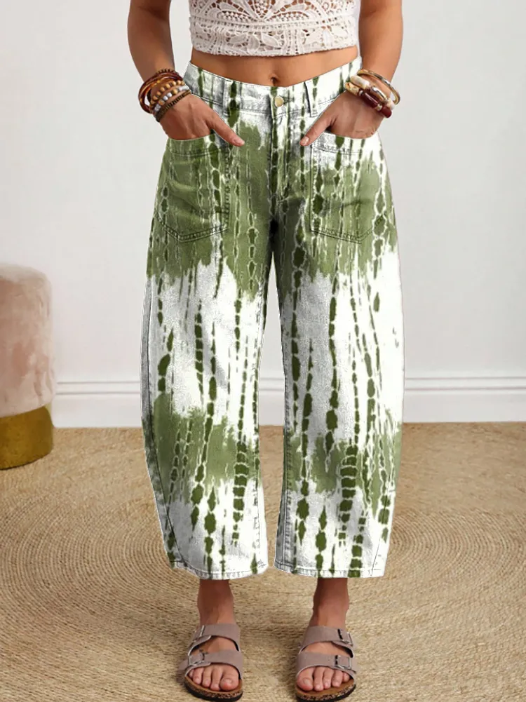 Women's Retro Tie-Dye Art Print Casual Washed Cotton Jeans