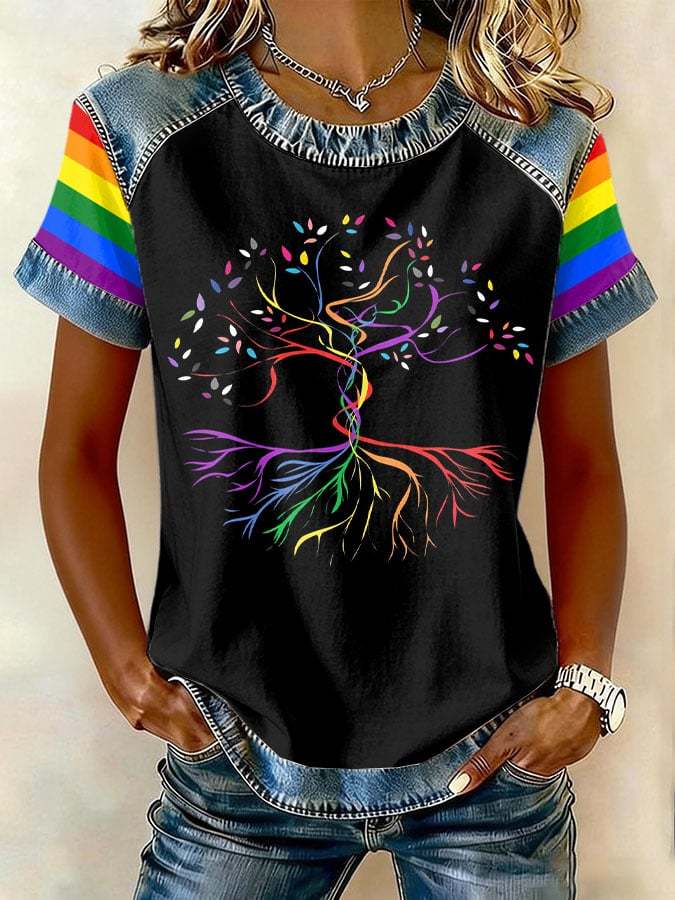 Women's Retro Tree Life Rainbow Lgbt Cool Gay Pride Print T-Shirt