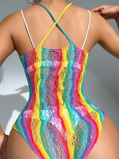 Women's Sexy LGBT Striped Mesh One-Piece Swimsuit