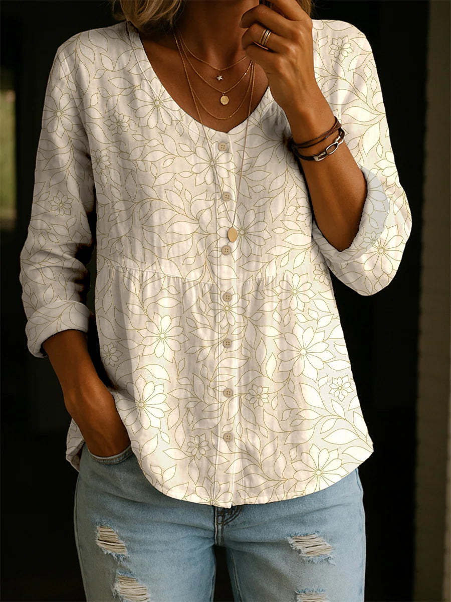 Women's Simple Pattern Art Print Casual Cotton Shirt