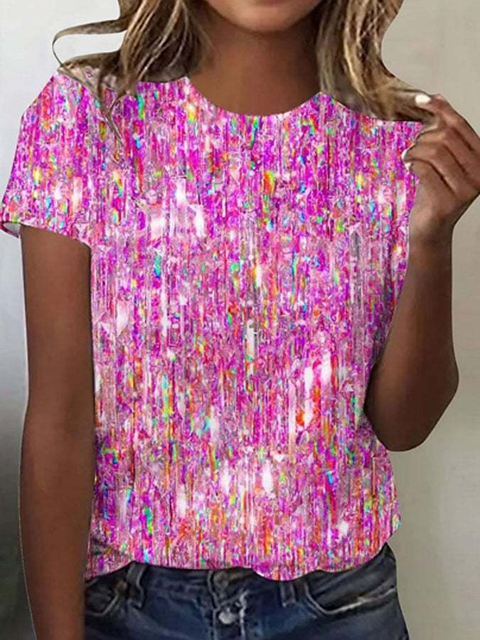 Women's Striped Breast Cancer Awareness Print Casual T-Shirt