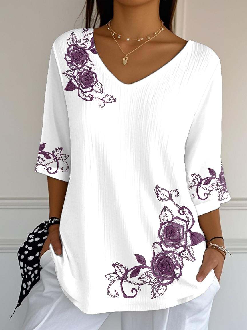 Women's Summer Alzheimer's Purple Lace Print Long Striped T-shirt