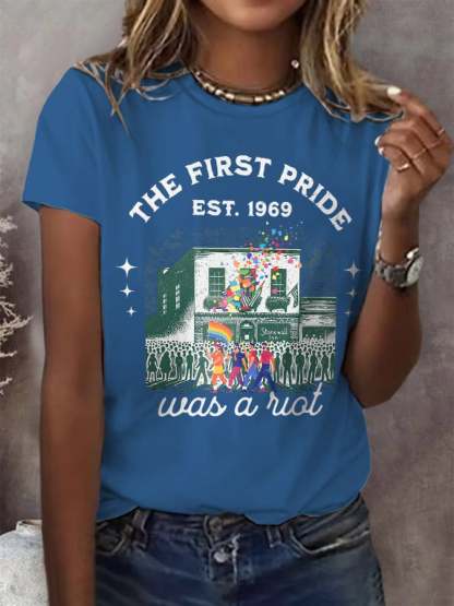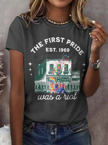 Women's The First Pride Was A Riot Print Round Neck T-Shirt
