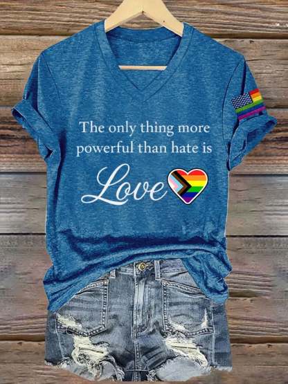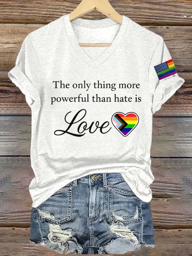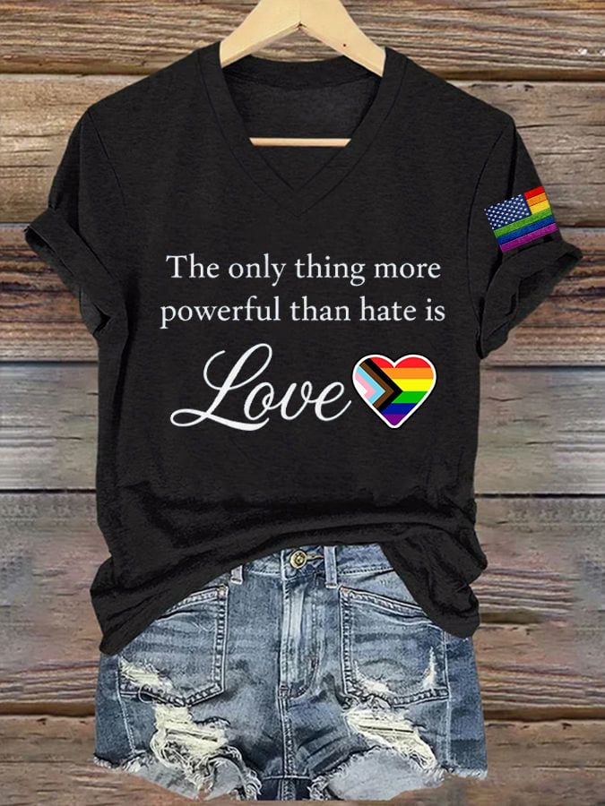 Women's The Only Thing More Powerful Than Hate Is Love Print V Neck T-shirt