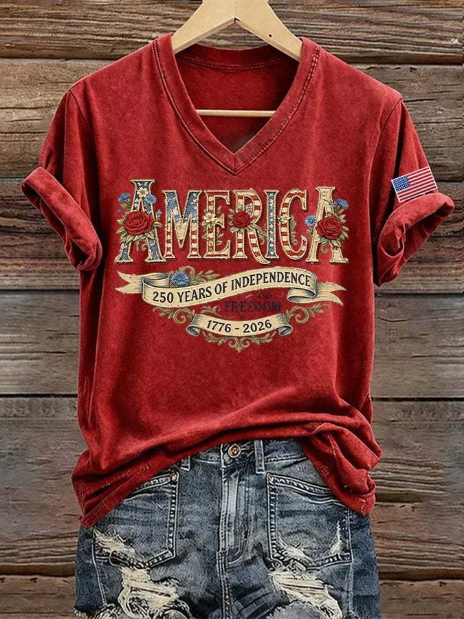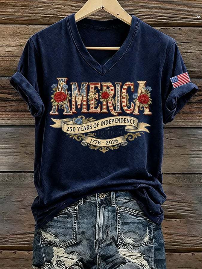 Women's USA 250 Years Independence And Freedom 1776-2026 Printed Short-Sleeve T-Shirt