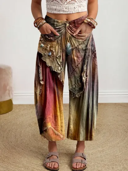 Women's Vintage Art Print Casual Cotton Trousers With Pockets