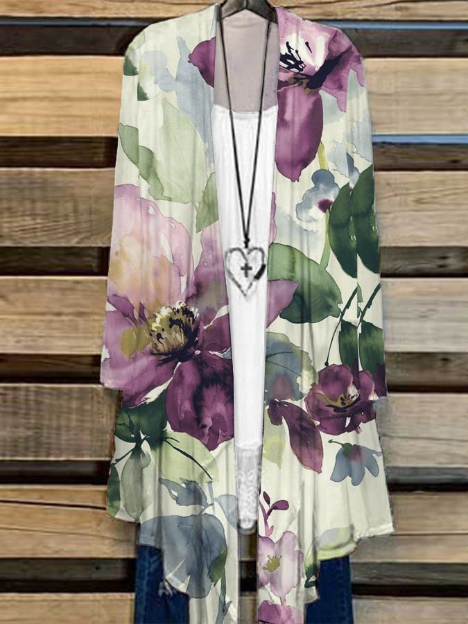 Women's Vintage Botanical Floral Design Printed Casual Cardigan