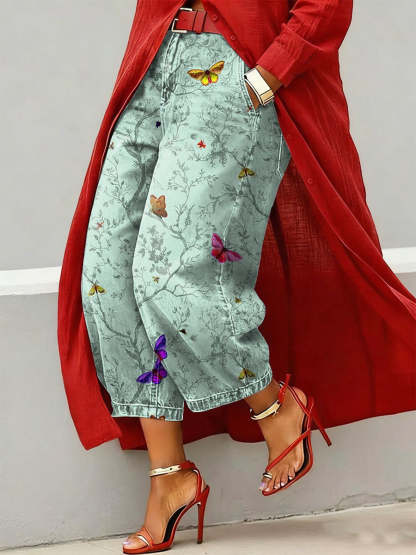 Women's Vintage Butterfly Art Print Casual Jeans