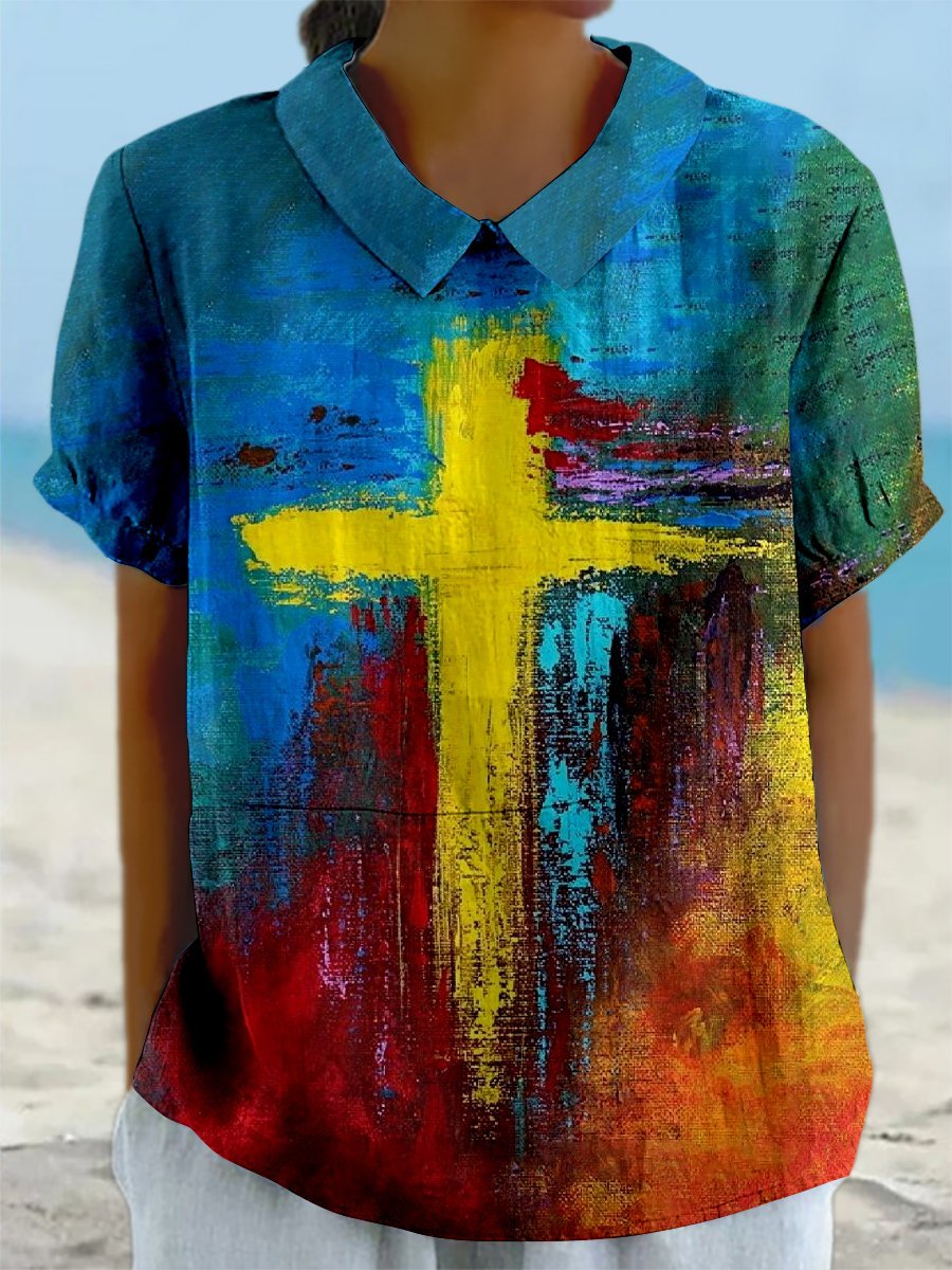 Women's Vintage Casual Cross Art Lapel Pullover Shirt
