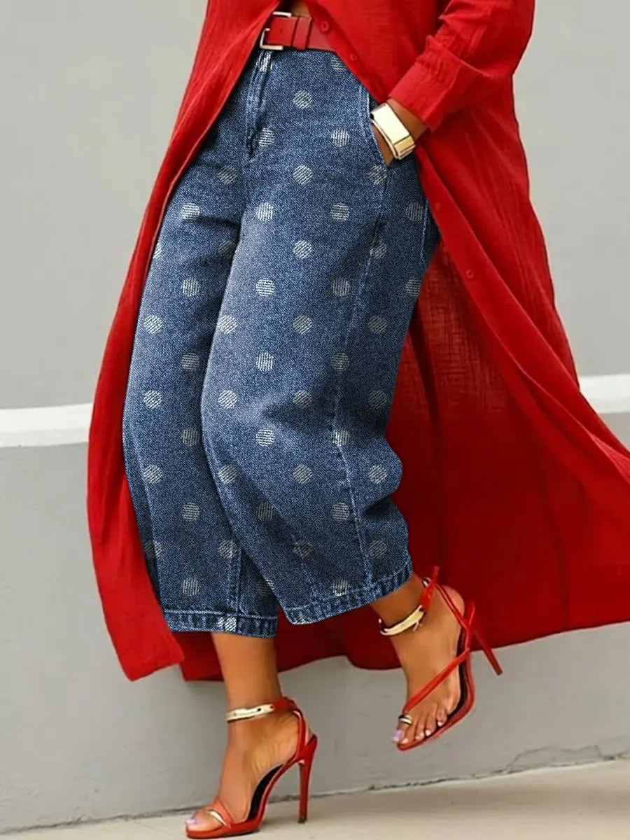 Women's Vintage Dots Art Print Casual Jeans
