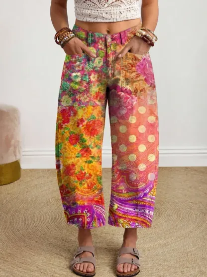 Women's Vintage Floral Pattern Art Print Jeans – lolonb