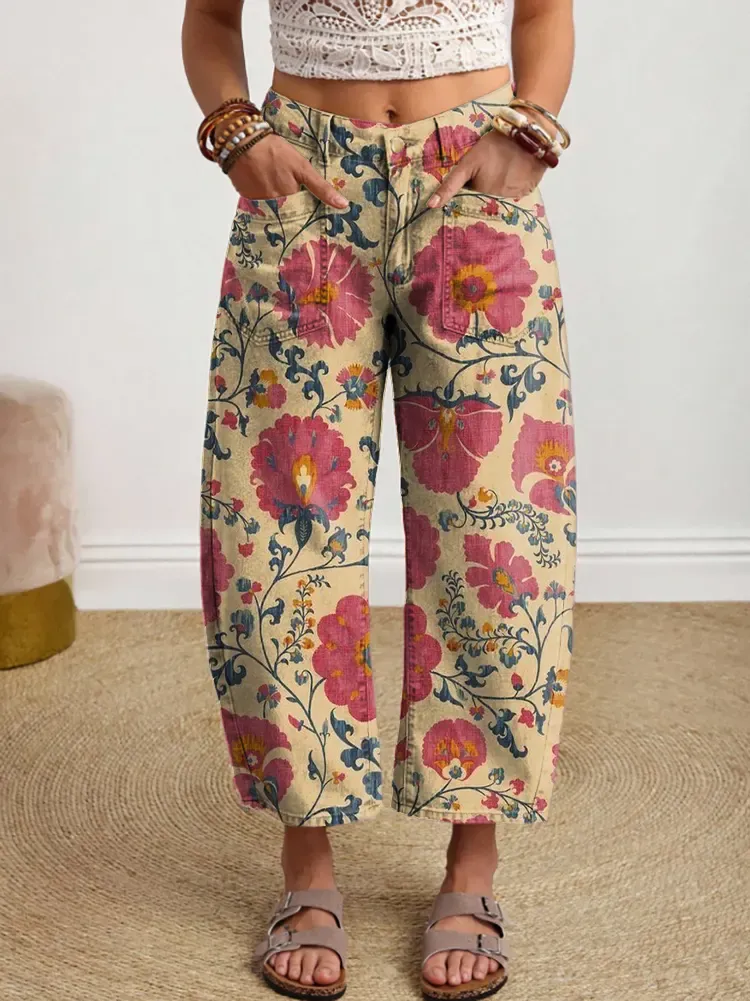 Women's Vintage Floral Pattern Art Print Jeans