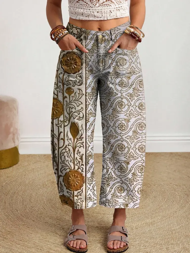 Women's Vintage Floral Pattern Art Print Jeans – lolonb