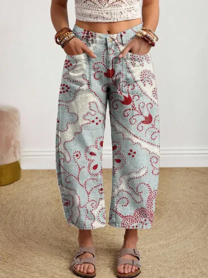 Women's Vintage Floral Pattern Art Print Jeans – lolonb