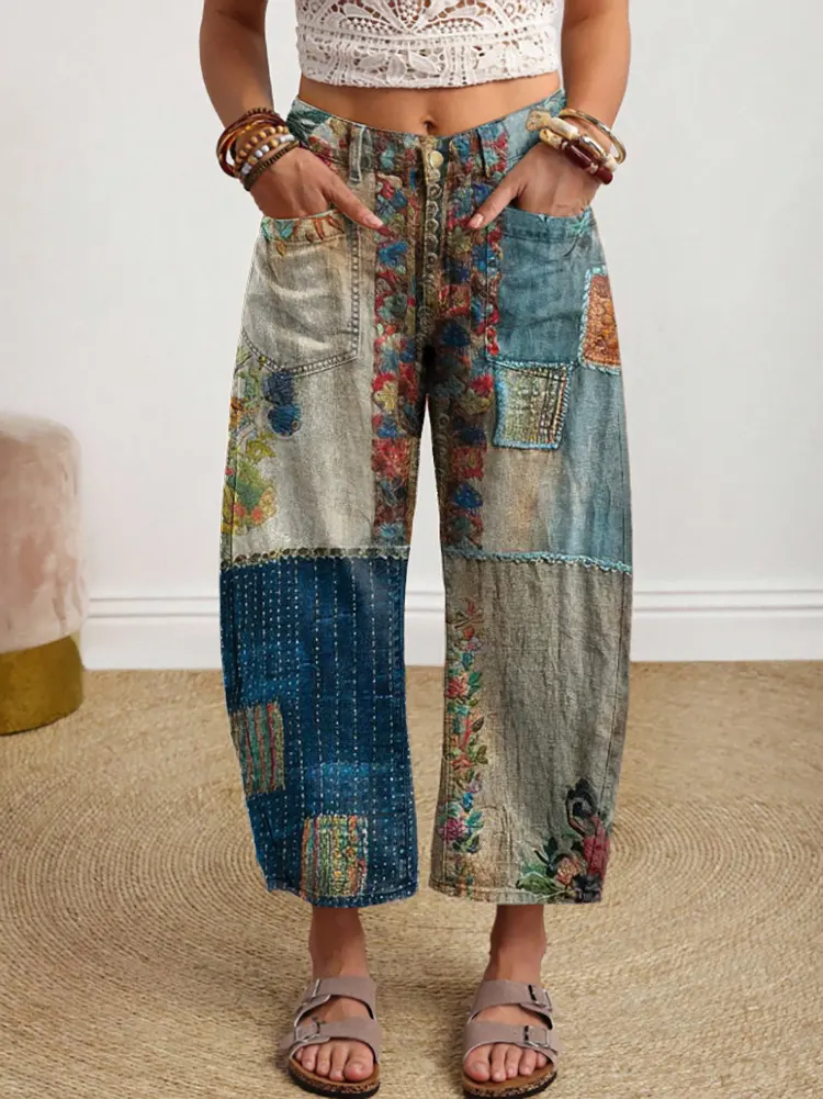 Women's Vintage Floral Pattern Art Print Jeans – lolonb