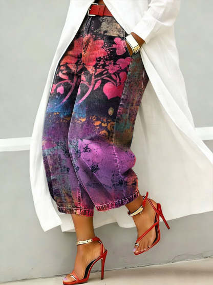 Women's Vintage Floral Print Casual Jeans – lolonb