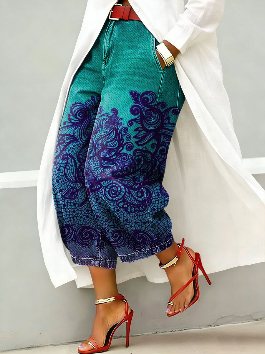 Women's Vintage Floral Print Casual Jeans – lolonb