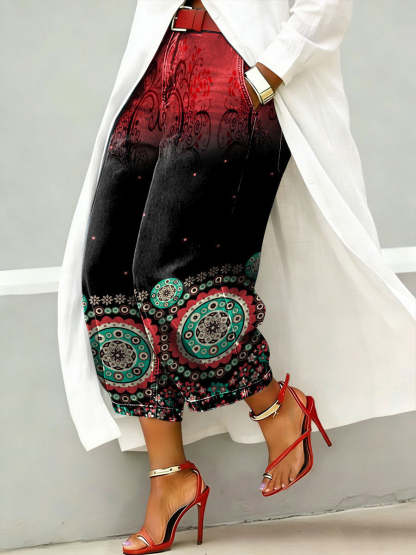 Women's Vintage Floral Print Casual Jeans