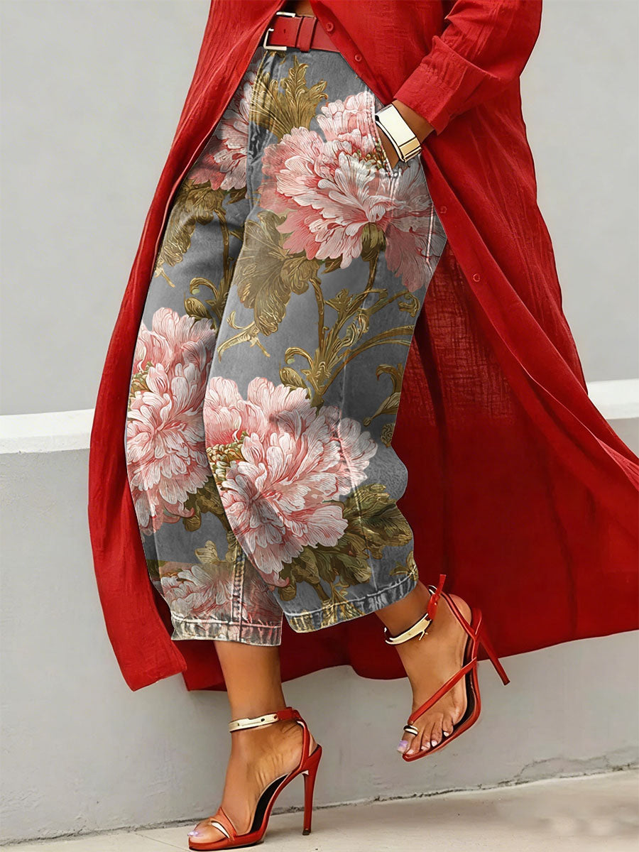 Women's Vintage Flower Art Print Casual Jeans – lolonb