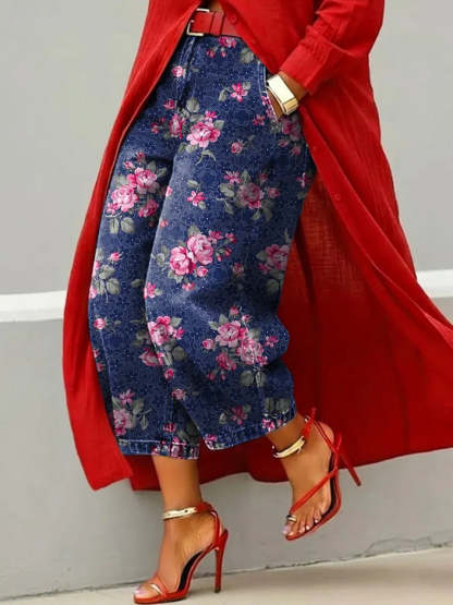 Women's Vintage Flower Art Print Casual Jeans – lolonb