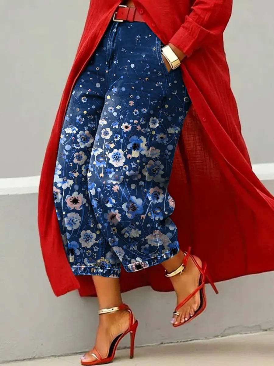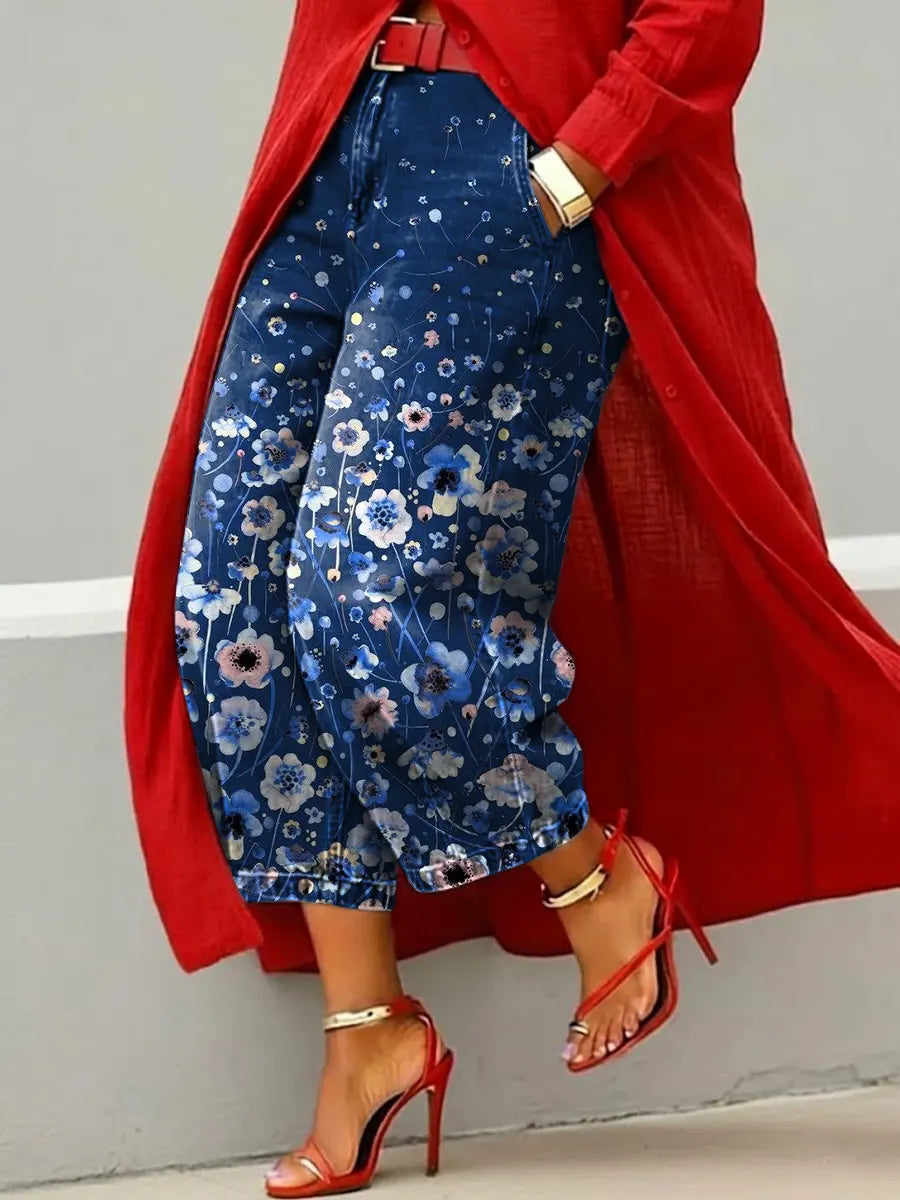 Women's Vintage Flower Art Print Casual Jeans – lolonb
