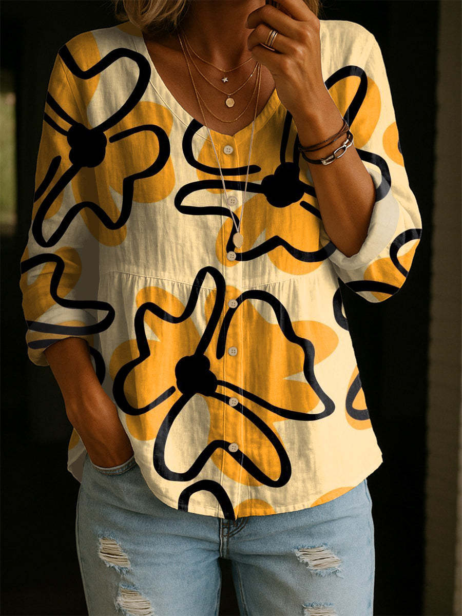 Women's Vintage Flower Art Print Linen Cotton Shirt – lolonb